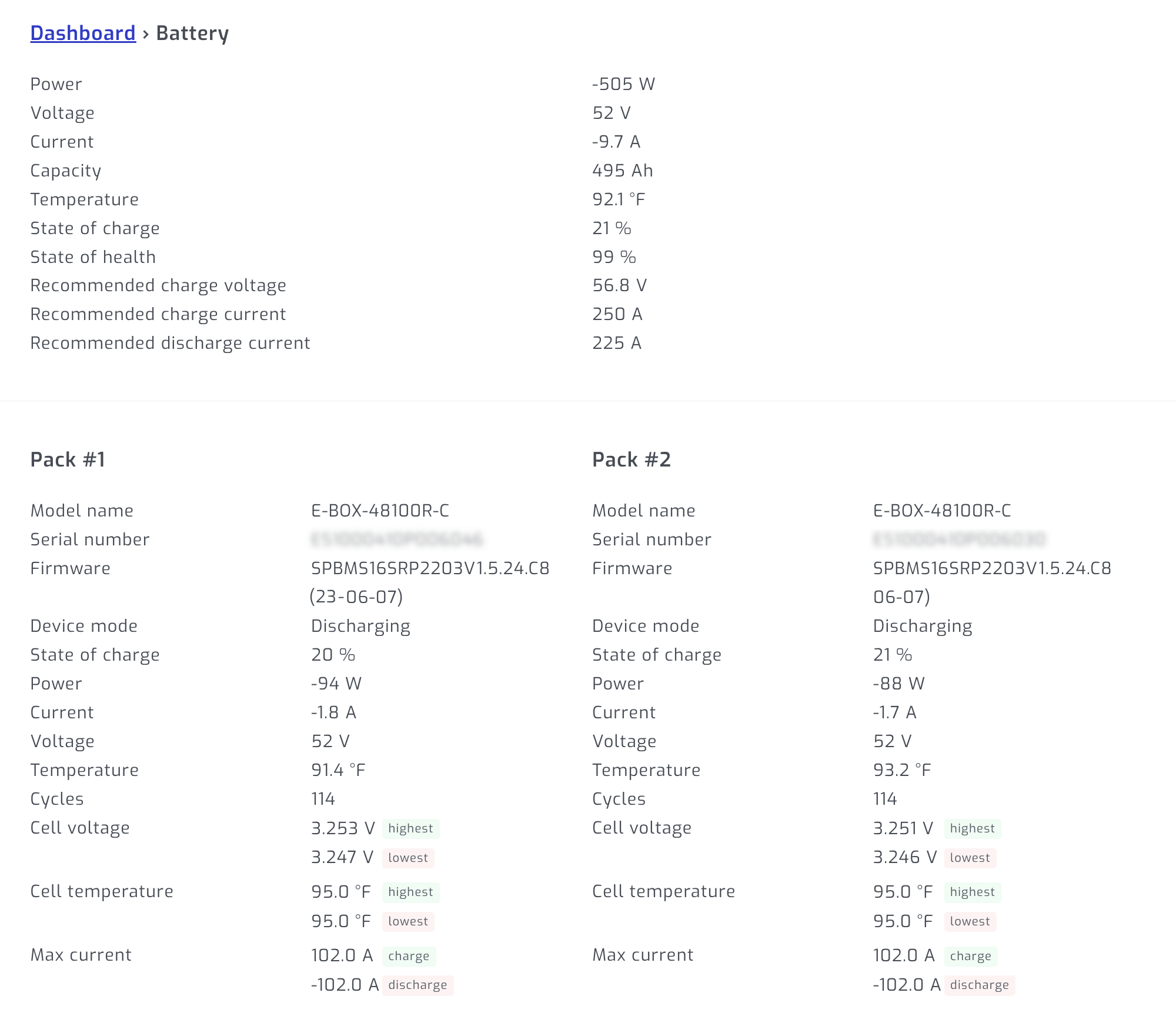 Screenshot of 5x Pylontech E-Box